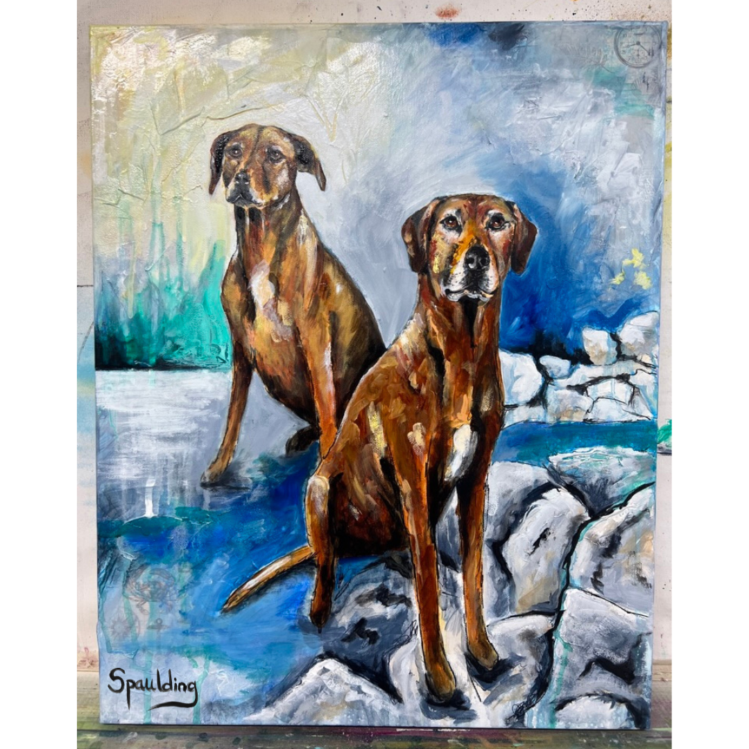 Recently, my wife and I commissioned Marie, from Marie Spaulding Art, to create a painting of our recently deceased family dog and our current dog. The dogs were inseparable companions. "Marie painstakingly reviewed several images of both dogs and masterfully captured the essence of their appearance and contrasting personalities. In addition, she beautifully supplemented her artistry with brilliant colors of the Maine coastline.The painting was presented to my wife as a Christmas gift. Marie's creation is so lifelike it evokes visible emotion from family members each time they see the work hanging in its place of prominence in our home.