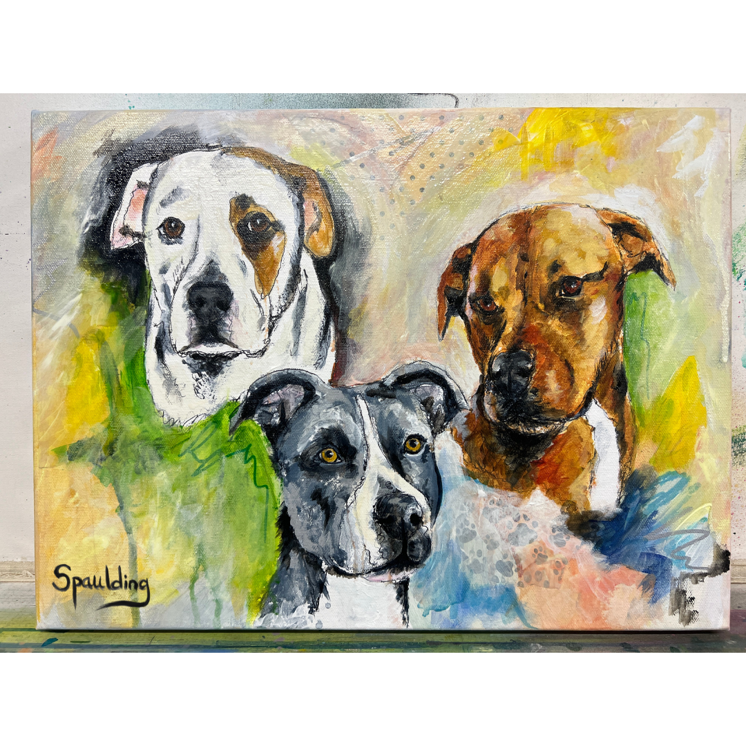 I commissioned a piece for my daughter and son-in-law's 3 dogs. Marie was a delight to work with and kept me well informed of the progress with each stage of the process. It was exciting to watch how she went from sketching the dogs to the final product. Marie truly captured the personalities & coloring of the dogs and I couldn't have been happier. My daughter and son-in-law were overwhelmed with the finished piece! I'd highly recommend Marie Spaulding - you too will be overjoyed with her artistic ability!